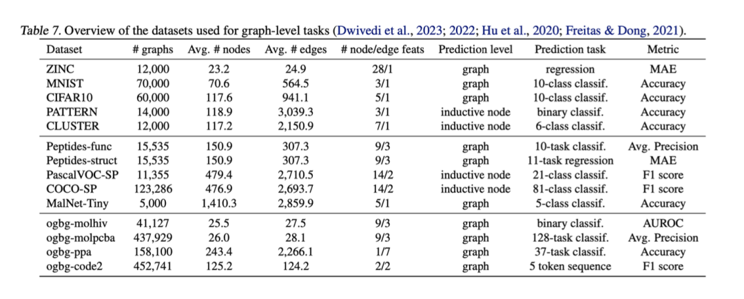 基准包括图回归、图分类等多类任务,覆盖从小规模分子图到百万级大图,测试模型的广泛适应性。
