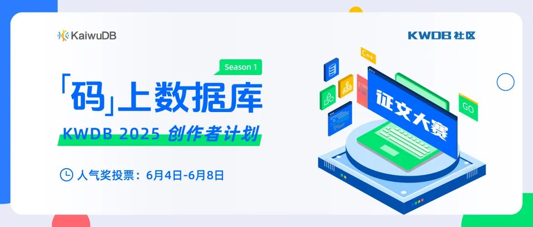 今天,KWDB 首届征文大赛“最佳人气奖”投票正式启动,所有通过审核的文章都将参与到本次评选,参与人气角逐!我们将为大家票选出来的 TOP 10 人气王作品奖励 2025 KWDB 限量定制大礼包一套!