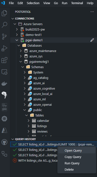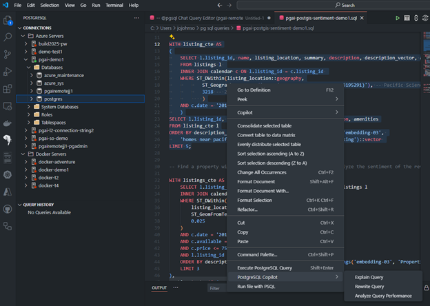 图 2:PostgreSQL Copilot 上下文菜单的屏幕截图。单击可展开。