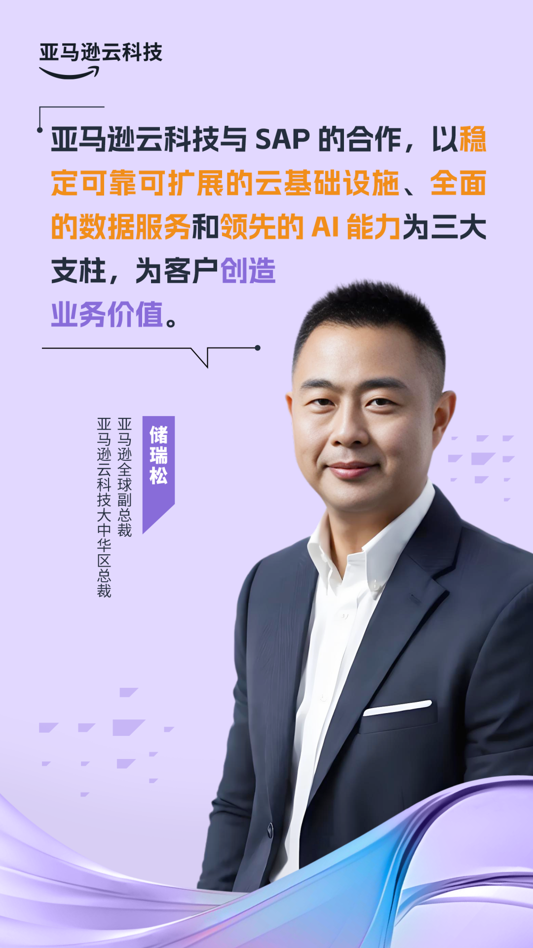 亚马逊全球副总裁、亚马逊云科技大中华区总裁储瑞松表示:作为亚马逊云科技全球战略合作伙伴,SAP与亚马逊云科技拥有超过17年的合作历程。双方已携手服务数千家客户,覆盖汽车、制造、零售、医疗、金融等众多行业。在中国,SAP与亚马逊云科技的合作也不断深化,帮助近200家中国客户采用RISE with SAP,加速其构建面向全球的运营体系。