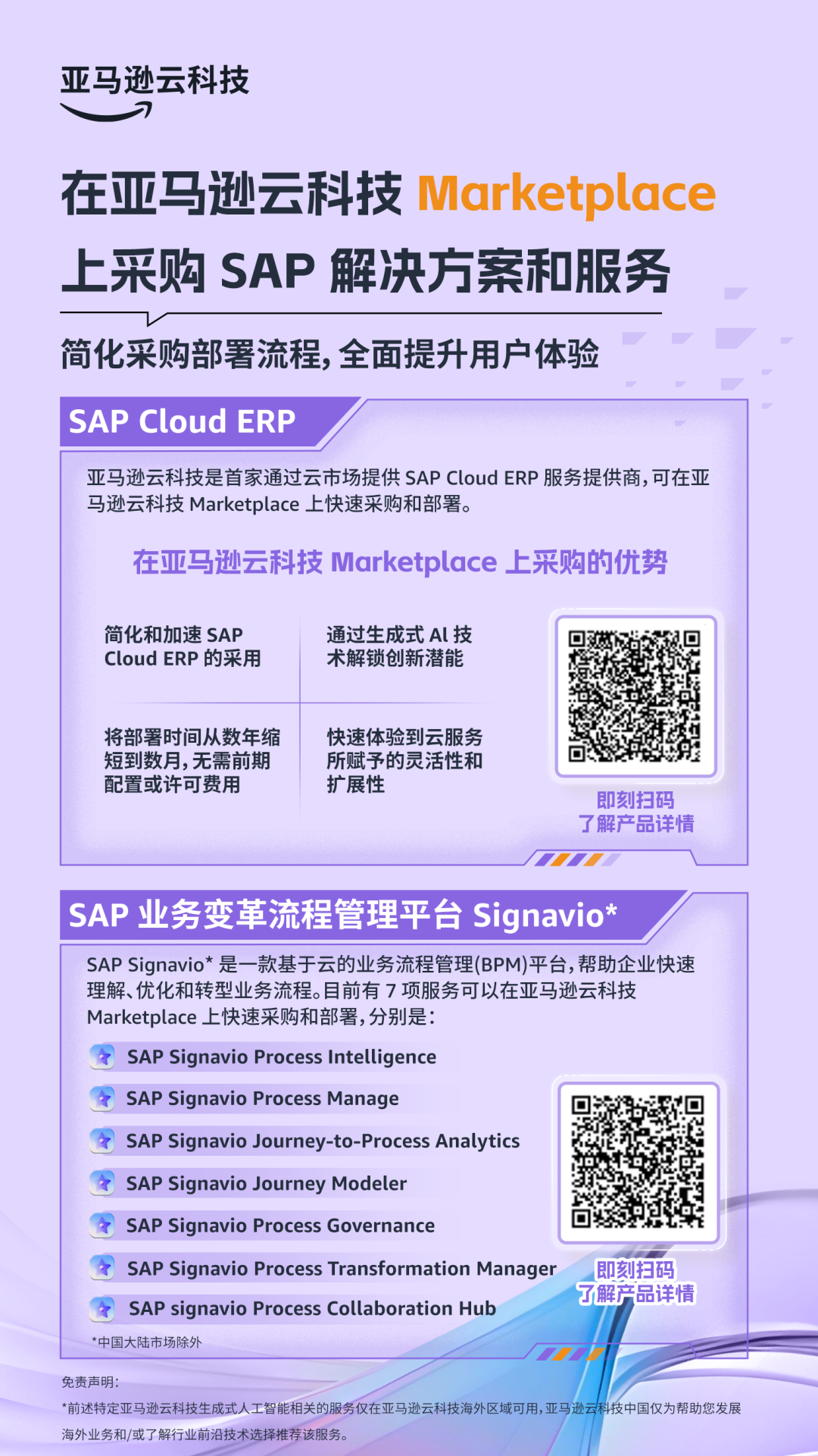 “亚马逊云科技与SAP的合作,以稳定可靠可扩展的云基础设施、全面的数据服务和领先的AI能力为三大支柱,为客户创造业务价值。”