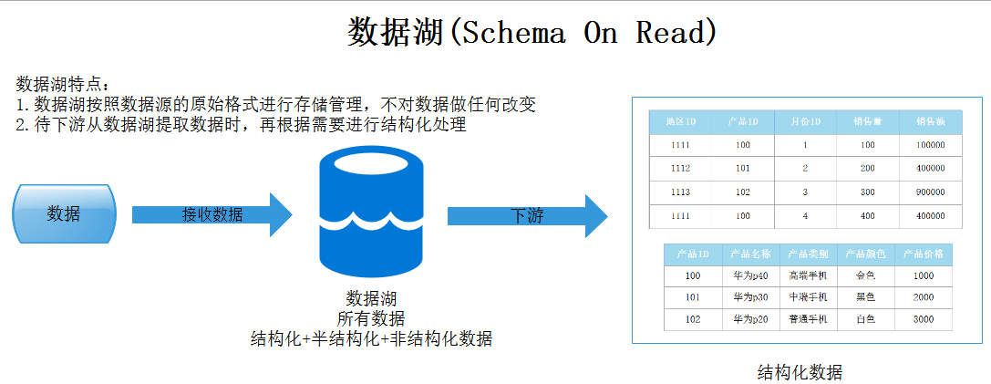 数据仓库是存储数据,进行建模,存储的是结构化数据;数据湖以其本源格式保存大量原始数据,包括结构化的、半结构化的和非结构化的数据,主要是由原始的、混乱的、非结构化的数据组成。在需要数据之前,没有定义数据结构和需求。