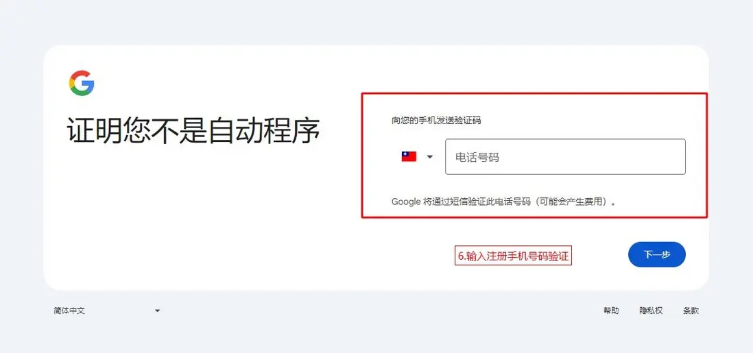 根据你所在地区和 Google 的政策,你可能需要进行手机号验证。