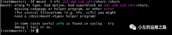 # mount -t nfs 192.168.128.147:/share /share (客户端IP:192.168.128.147)
