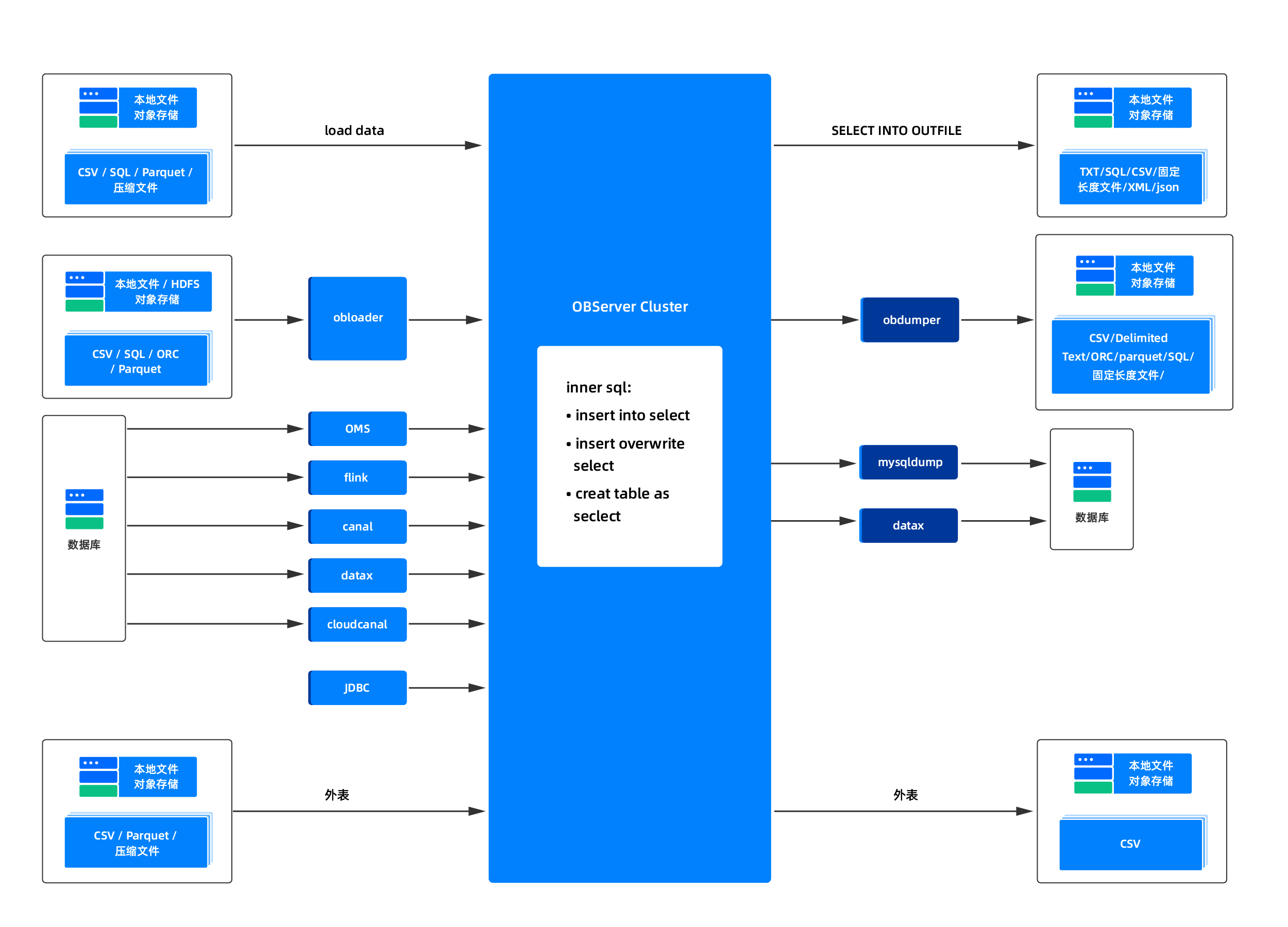 第一步,归集数据来源碎片化。针对这个场景,我能想到的就是OceanBase支持对象存储,将数据来源统一归集到一个对象存储中保管,根据实际需要来用旁路导入功能读入数据库中。对于实时行情的处理,通过DataX统一接入并写入到OceanBase中,可以最大程度实现整合。