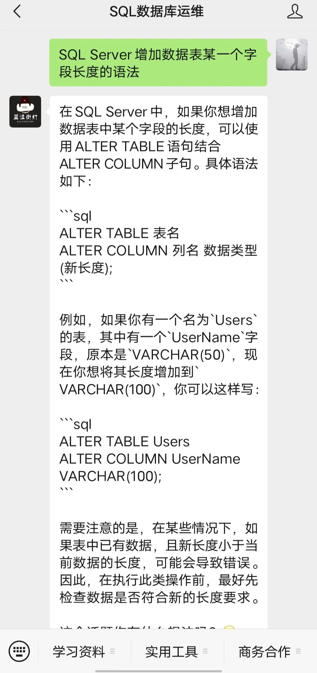感兴趣的小伙伴们赶紧去试试吧!公众号新的AI智能回复,随时随地的解决你的SQL问题!
