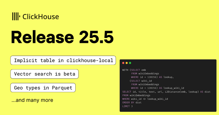 ClickHouse 25.5 带来了 15 项新功能 🌸 23 项性能优化 🦋 以及 64 个缺陷修复 🐝