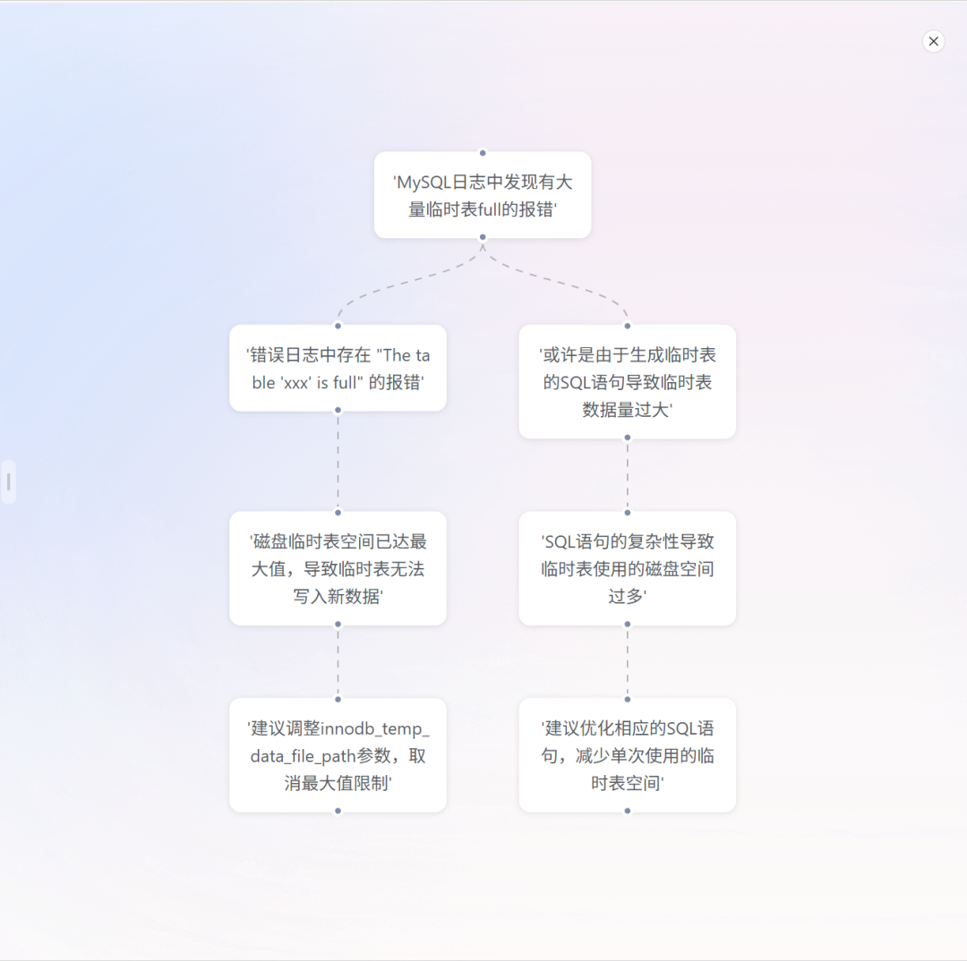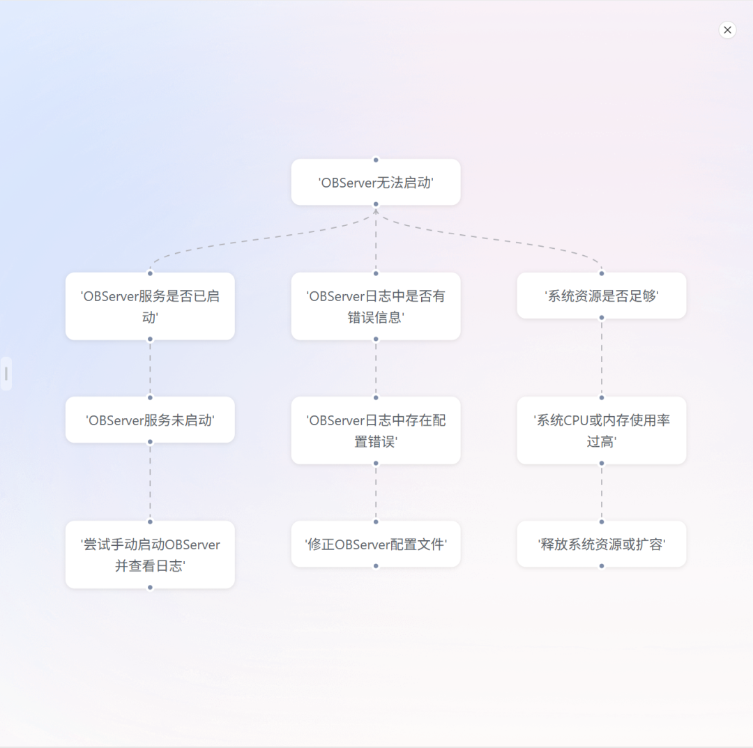 ❝v2.1 版本中,排查逻辑图与最终答案会出现明显的不一致,如排查逻辑图会知识溢出或知识缺失。