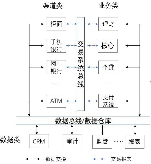 银行作为我国金融体系中的支柱行业,银行业务涉及种类众多,业务流程复杂,且像工行、建行等国有银行服务亿级的客户,每天交易量和BAT等互联网公司不相上下,同时不能造成1分钱的误差。因此没有健壮高效的信息系统做支撑,银行的业务是无法快速发展的。由于业务的复杂性和高业务量,银行的软件系统也错综复杂且不断迭代,小的银行可能是几十上百个系统,国有大银行可能有成百上千个系统。银行的软件系统从功能划分主要有交易类系统、数据类系统;交易类系统是承载业务流程的实时交易系统,它们一般是7*24小时运行,是银行业务正常运转的关键系统,交易系统主要分为渠道系统和业务系统(账务系统)两类:渠道系统:渠道系统就是客户接触银行的系统,这些系统大家都比较熟悉并经常使用,如ATM、手机银行、网上银行等系统。业务系统:主要进行账户管理、业务逻辑和账务处理的系统,如核心系统、个贷系统、票据系统等。以前银行的核心系统包括了存款、贷款、中间业务等所有业务功能,但随着客户数、交易量的增加以及信息技术架构的发展,目前许多银行的核心系统已经按业务或功能进行了拆分,演变成了多个系统,如个人贷款系统、公司贷款系统、票据系统、总账系统、基金理财系统等,从系统上看这样演变系统间耦合性更低,扩展性更好,从业务上看,各系统的业务分工更加明确。随着核心系统的拆分,系统间的交互原来从核心系统内部的模块调用变为了系统间的调用,如从手机银行查询客户存款账户的余额,那需要手机银行发送交易到核心系统查询。随着越来越多的子系统独立出来,系统间的交互也更加频繁。因此很多银行在2000年后就开始建立了交易总线系统并规范系统间调用的服务,所有系统请求方的系统请求都先发送到交易总线系统,由交易总线系统进行转发到服务提供方并将结果返回,统一了系统交互的协议、并且制定了系统间交互的规范。由于交易类系统属于面向联机事务处理(OLTP),需要确保交易的稳定和高效,因此消耗大量计算资源的数据加工分析不适合在交易系统中进行,数据类系统主要汇集各交易类系统的数据并进行加工,为各业务部门提供运营管理、风险控制、精准营销所需的数据和报表。数据类系统面向联机分析处理(OLAP)。时效性和可用性没有交易系统高,但是处理的数据量大,业务分析逻辑更复杂。常见的数据类系统有客户关系管理系统、审计系统、监管报送、报表系统等。那数据类系统的数据主要源于各交易系统,是否每个数据类系统都各自去从交易系统获取数据并各自加工呢?答案显然是否定的,这样做不仅浪费系统获取数据、加工数据的资源,也会使各系统加工口径不一致。因此许多银行会建立数据仓库或者叫数据总线的系统,统一从交易系统抽取数据并进行存储计算。因此数据仓库在整个银行的系统中是作为全行的数据中心、数据流转的枢纽,从系统架构的定位来看主要有以下功能:1)数据抽取:采用统一工具从源系统获取数据。