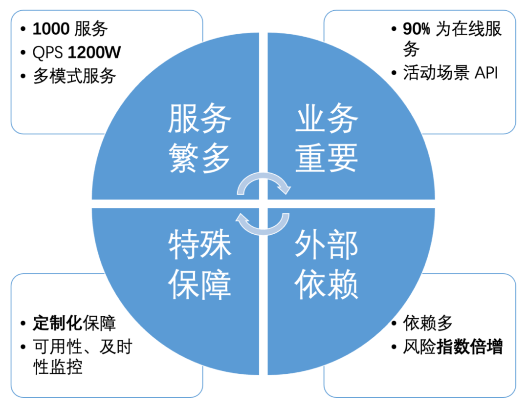 业务重要:绝大部分业务是在线业务,直接影响直播、电商、广告等,这类场景对于服务本身可用性要求非常高;