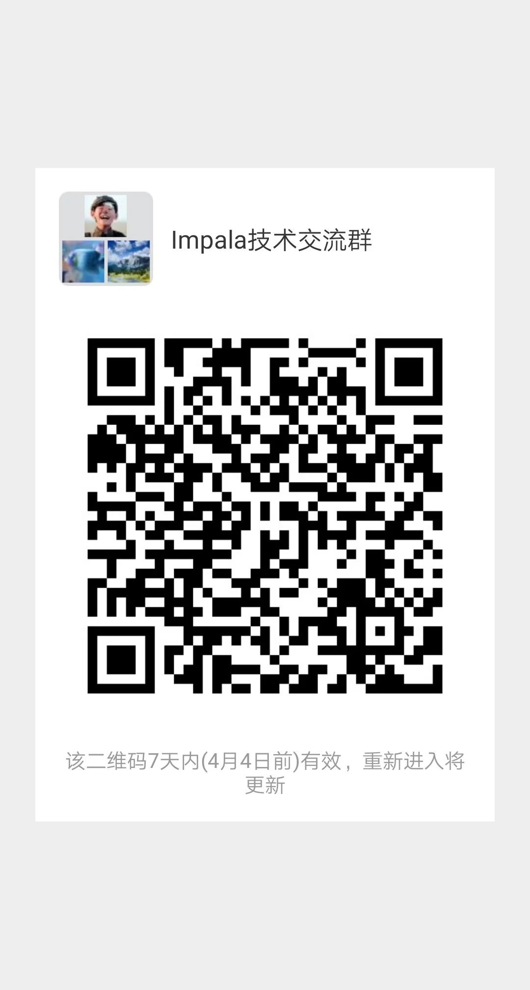 如果二维码过期,请在微信公众号中回复”impala“获取最新二维码