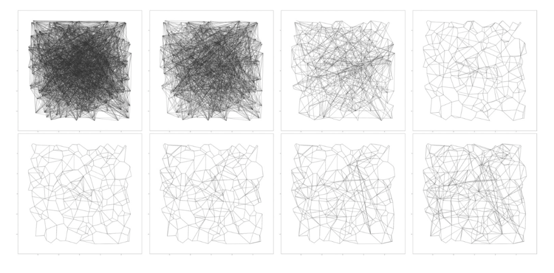 剪枝完成后,算法还会补充沿着贪心搜索路径到节点 ppp 的边。整个剪枝过程分为两轮进行,第二轮使用更宽松的阈值,以保留关键的长距离跳跃连接。