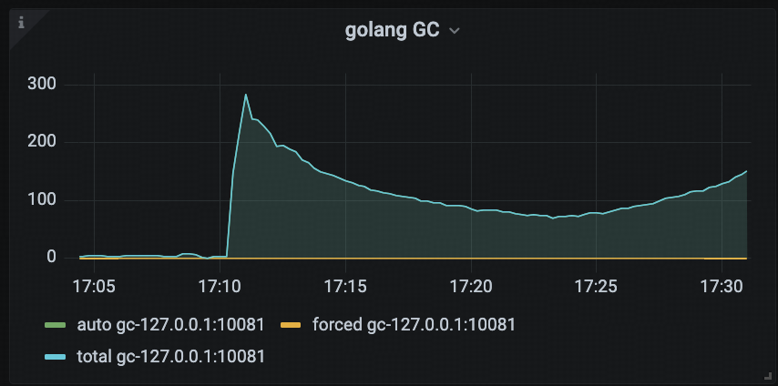 该面板用于展示每个监控上报周期内 Golang GC 的触发次数,帮助用户直观了解 GC 频率。