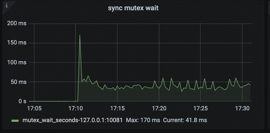 通过该面板,用户可以直观观察同步锁的等待时间,从而判断是否存在严重的锁争用问题。例如,当 TiDB 并发性能下降,且该指标显著上升,可能意味着某些关键路径存在严重的锁竞争。此时,可以进一步查看 Mutex Profile 或 Goroutine 栈,以定位问题。