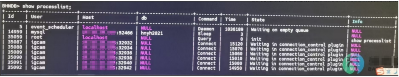 客户环境数据库在启用连接控制插件的情况下,监控系统使用了 igcam 不存在的用户进行数据库访问,该行为会导致 Connect 状态的连接大量积压,很快达到 max_connections