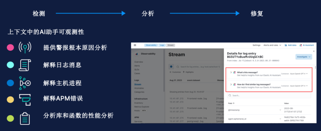 结合企业运维经验知识库,AI+MCP+RAG 结合,Elastic 从日志、全观测到安全,都可以通过 GenAI 提升智能运维能力: