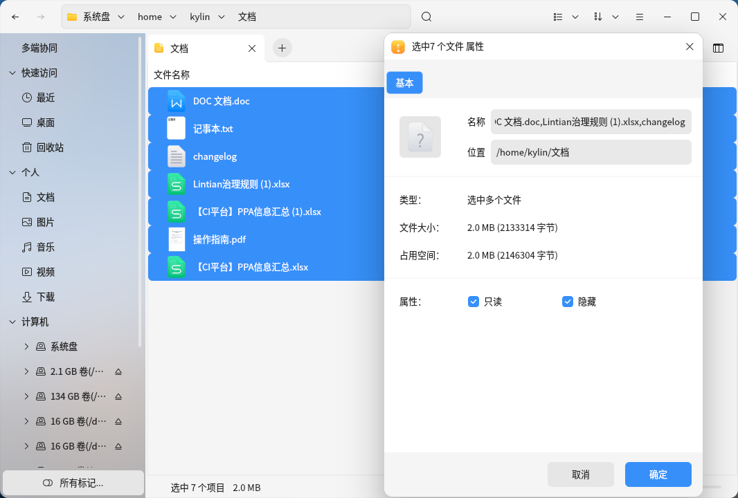 以往版本中,用户只能逐个设置文件的只读或者隐藏属性。2503版本给用户提供了更便捷的功能,选中多个目标文件或者文件夹后,可以直接在右键属性中全部设置生效,批量高效处理更便捷。