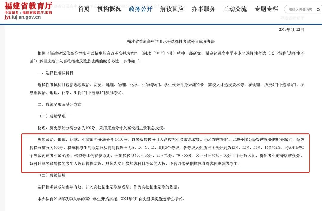 1. 限于篇幅,本文以福建省为例,外省赋分制的政策以当地教育部门公告为准;