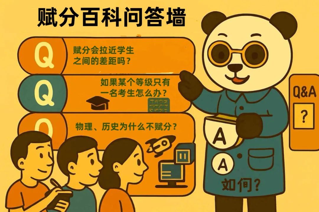 "最后,让我们来解答一些关于赋分制的常见问题。"墙上立刻展开了几张彩色问题卡片,熊猫老师一一回答: