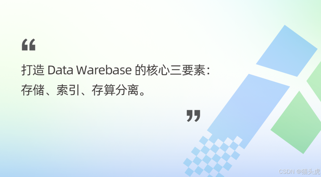 许多客户会问我们:“你们是如何将这些本质上差异巨大的能力整合到一个系统中的?”其实,我们整个团队经历了数据库,大数据,再到数据库的时代,积累了大量的工程经验。我们今天的产品其实就是集成了数据库和大数据的最重要的三个能力,第一是存储,第二是索引,第三是在高速存储上做到数据库级别的存算分离。