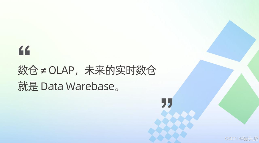 但是光有 HTAP 是不够的,未来是一个多模数据库的时代,首先要有很好的 OLTP 和 OLAP 的能力和性能,其次要支持实时增量物化视图做数据的 Instant Transform、文本搜索、向量搜索、文档数据存储和查询,甚至还要支持对湖上数据的查询,因此我们提出了 Data Warebase 的概念,它是 Database+Data Warehouse 的合集,是未来多模数据库的一个新范式。