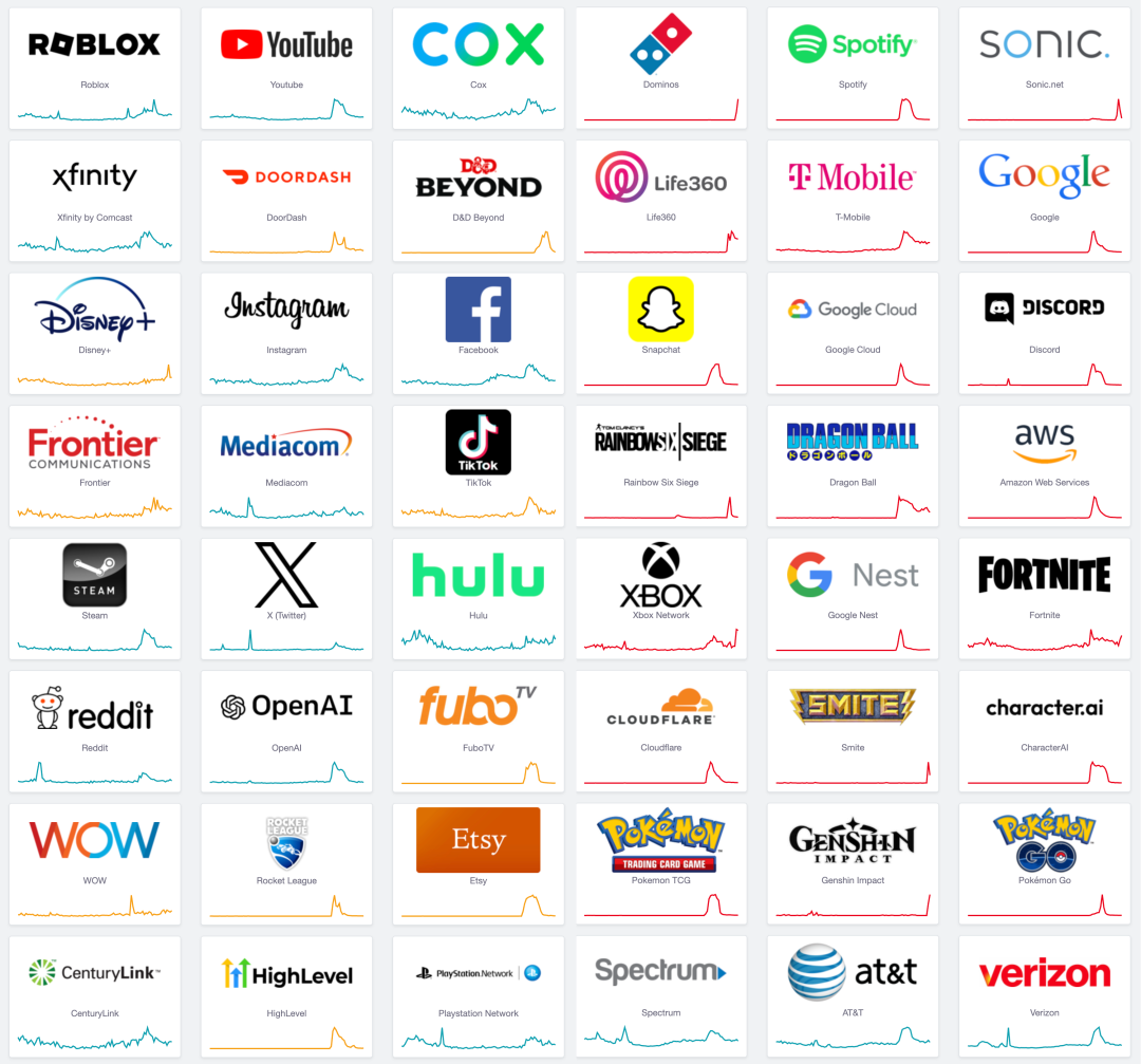 就是现在,根据 DownDetector 故障检测器的报告,几乎你能想到的主要互联网服务供应商都出现了显著故障与错误。背后的线索全部指向 Google 云平台 GCP 上的一场全局性大故障。