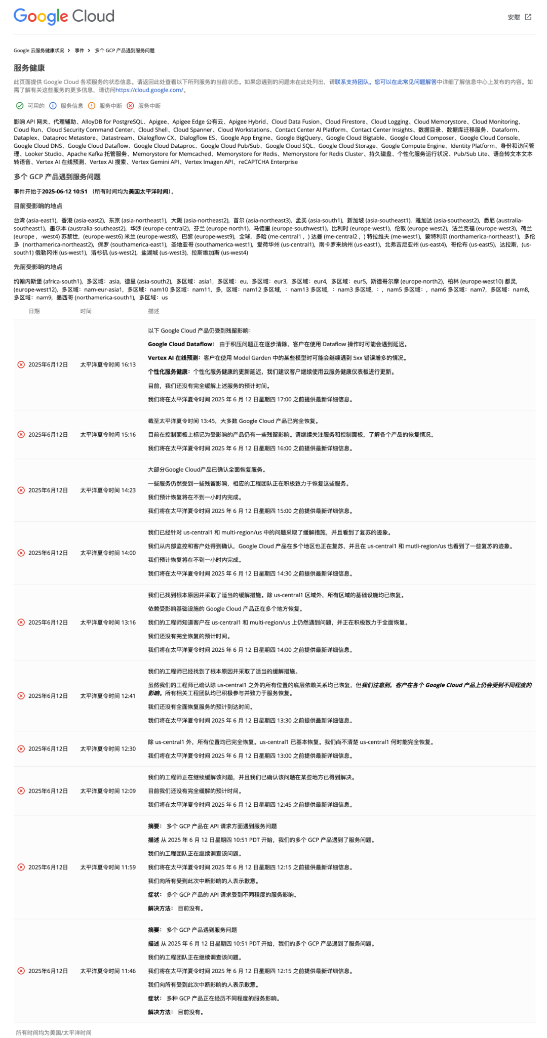 触发因素分析:截至目前(事故发生次日),Google尚未公布详细的事后分析报告(RCA),仅表示将在内部调查完成后对外发布分析。因此具体的触发原因只能根据现有信息推断。