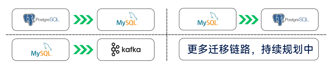 NineData 社区版 V4.2.0 数据复制能力全面升级,新增三条迁移链路,为复杂数据流转场景提供更灵活的解决方案。新增以下链路支持: