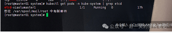 kubectl -n kube-system get pods # 首先执行这个命令查看一下master节点中etcd服务的name信息