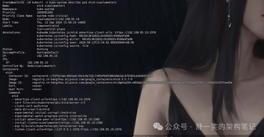 kubectl -n kube-system describe pod etcd-xiaolumaster1