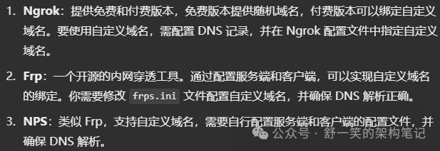 本地搭建的内网穿透工具为开源工具ngrok,为什么使用这个因为这个免费版启动之后会得到一个免费的域名。下面是目前常见的内网穿透解决方案的对比。
