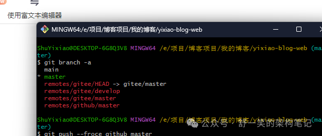 执行这个命令之后会强制推送代码到远端github仓库,需要注意的是远端仓库会被直接覆盖。要是首次推送会有验证框需要输入自己的github账号进行验证