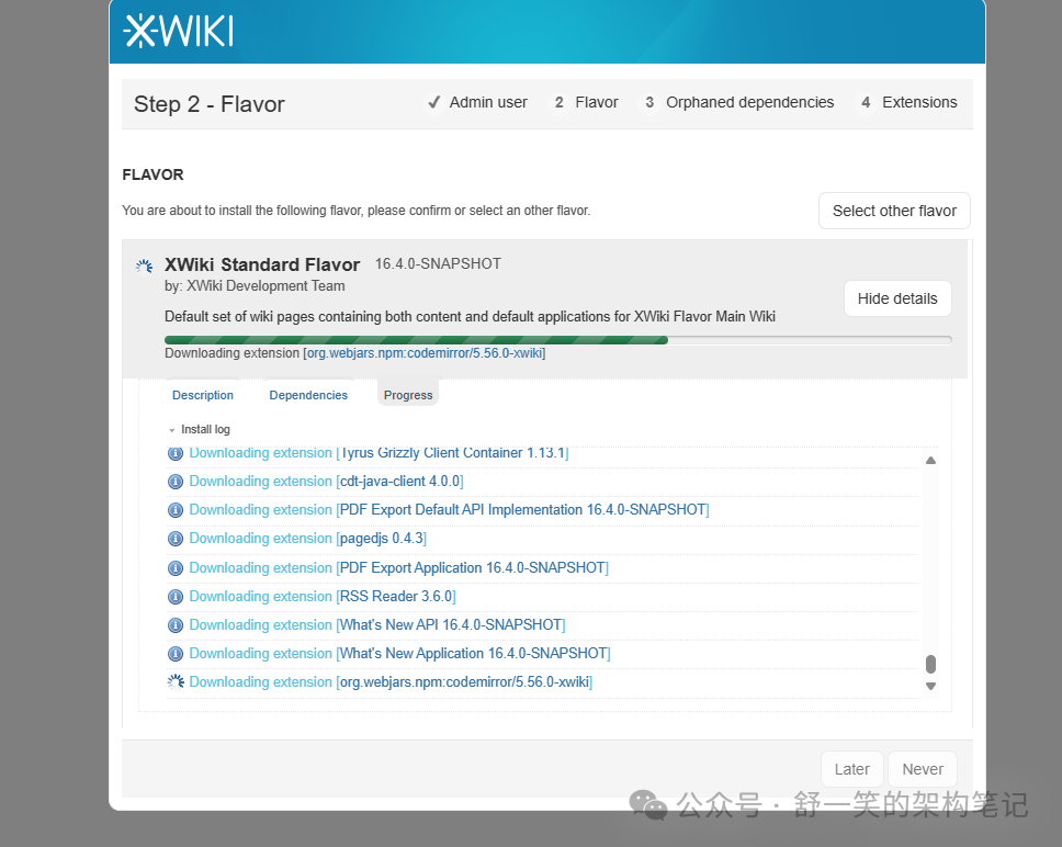 按照网页上的指示完成 XWiki 的安装和初始化设置。