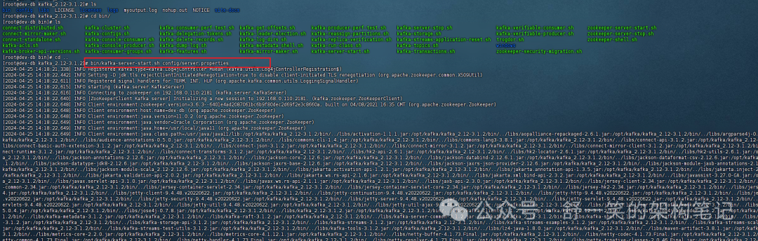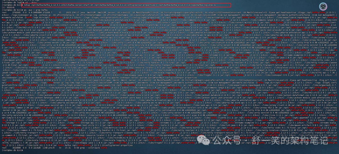 但是使用上述命令启动kafka,服务会随着你的标签页关闭导致服务关闭,因此需要采用后台或者系统服务的方式进行。 这里我采用了 ’nohup‘ 命令