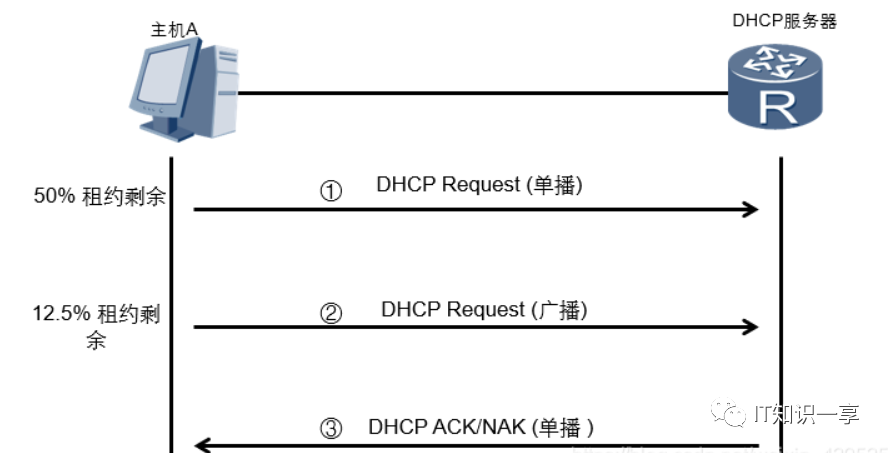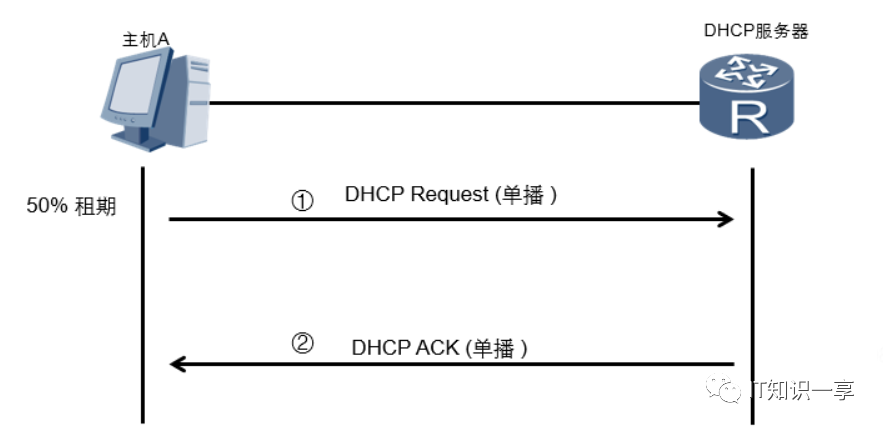 IP租约期限达到50%时,DHCP客户端会请求更新IP地址租约。