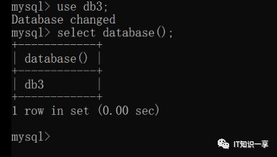 查询当前正在使用的数据库名称;Select database();使用数据库Use 数据库名称;