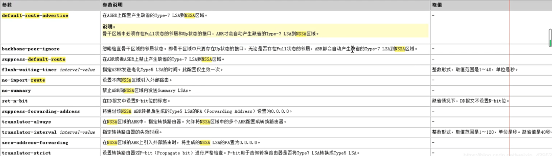 ASBR必须存在一条其他形式的缺省路由,才能够向NSSA区域下发7类缺省,但是ABR不需要存在。