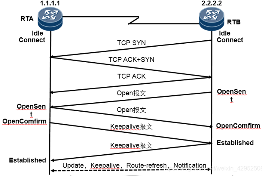 BGP工作原理:1.TCP连接建立 2.数据库的更新