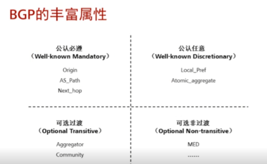 公认必遵:所有的bgp路由器都需要识别和支持的属性(需要存在于update)