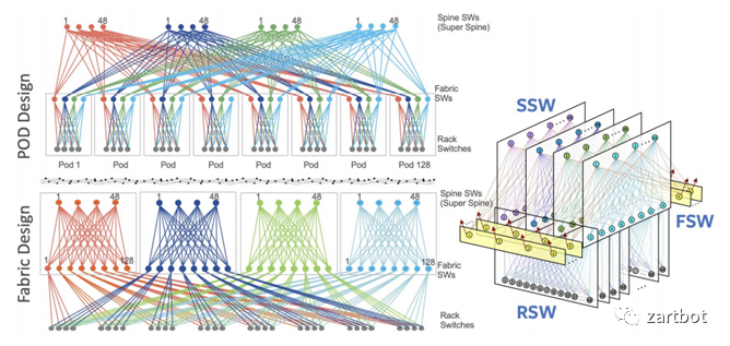 时至今日数据中心也在用着这样的架构, 一个大的CLOS构成的交换网: