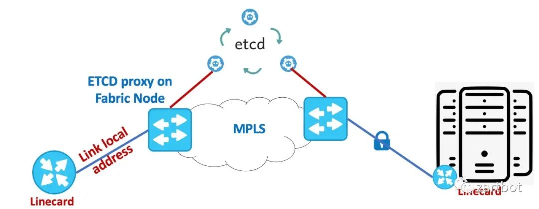 通常根据我们的测试,源Linecard因为对目的Linecard节点的Probe几乎总是一个最好的选择,即直连连接,这样也会省掉较长的Segment List,仅有在网间拥塞故障后,Linecard需要借助Fabric节点做路径Relay时会压入多个标签栈,通常根据我们的测试最多2~3跳。路径选择的算法上则相对于传统的路由协议有很多优势, 因为通过终端Linecard watch ETCD ”/stats“你可以获得尽量详尽的信息,A*一类的算法也成为可能,毕竟路径满足SLA就好,不管它快不快。所以这是第一次给了终端选择的能力。同时我们为每个节点都准备了geo-location的信息,这样也可以限制终端的搜索域来加快计算速度。同样即便是不需要Linecard节点,一个简单HTTP/3 QUIC的通信流,也可以Server动态的计算一个最近的CDN节点做Segment Routing,这个我们第五章会讲。3.9 线卡配置