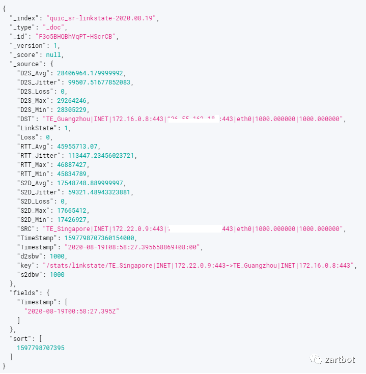其实这也是一个很好的副产品,通常您也可以直接在数据中心交换机的SONIC上开容器放置,它可以自动帮你完成fullmesh的probe,probe的频率上来看,采用一秒一个probe,100s统计一次的方式,协议算法和TWAMP一样的,计算T1~T4时间差获得单向链接延迟。当然你如果觉得fullmesh麻烦,也可以做类似于BGP AS-PATH那样,仅允许SiteID不同的节点相互probe,这样就恰好匹配了整个DC switch的CLOS拓扑,反正你Spine是一个AS号,Leaf是一个。另一方面我也常用它来监控K8S集群,因为我同时会上报节点CPU和内存的信息Key="/stats/linkstates/SRC_SRLOC->DST_SRLOC"