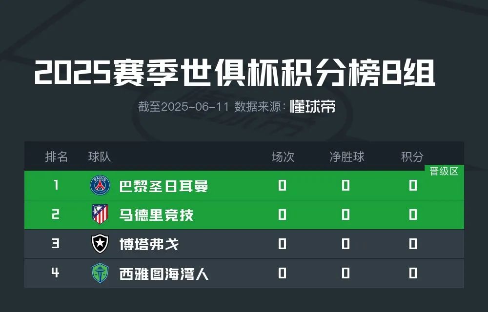 巴黎圣日耳曼作为本赛季欧冠冠军,整体实力明显占优。马竞虽以防守见长,但阵容老化问题明显。南美解放者杯冠军博塔弗戈将带来南美独特的进攻风格,而西雅图海湾人作为北美球队,拥有主场优势,但实力与欧洲和南美豪门仍有差距。