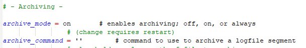 初始化的时候还是设置archive_mode = on 在windows中,我们把archive_command设置为'echo ""' 在linux中,我们把archive_command设置为'/bin/true'