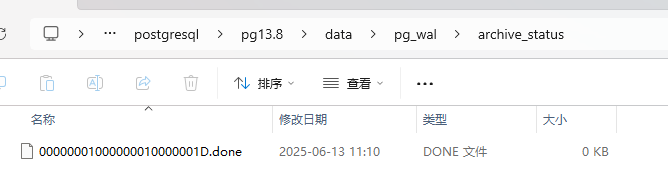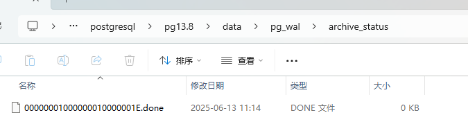 查看wal目录归档记录状态(1d是已经归档,那么上面在用的1e是没归档的)