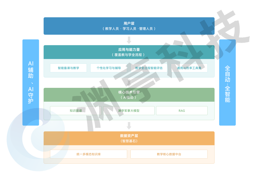 在渊亭智慧助教、助学解决方案的框架下,大模型如同一个能够进行深度语义理解和流畅自然语言交互的“智能引擎”,而知识图谱则扮演着经过严格校验、内容精准、结构清晰的“专业知识地图”的角色。