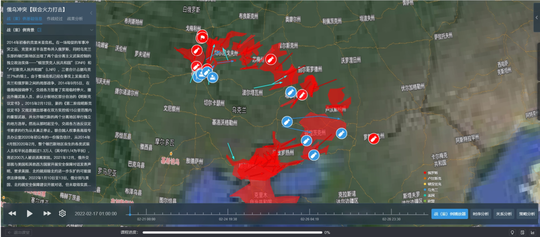 利用战例播放器回顾历史战例,重演经典战役,结合AI的分析能力,系统能对经典战役进行多维度、深层次的复盘与重演,结构化解析并可视化呈现核心要素,帮助学员深刻理解军事理论在实战中的具体应用,洞察战争规律,培养战术素养和批判性指挥决策能力。