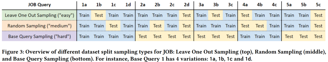 JOB 的 113 个查询(由33个模板生成) STACK 原有 6191 个查询 (由16个模板生成),作者从中采样了 14 个模板,每个模板 8 个查询,共 112 个查询