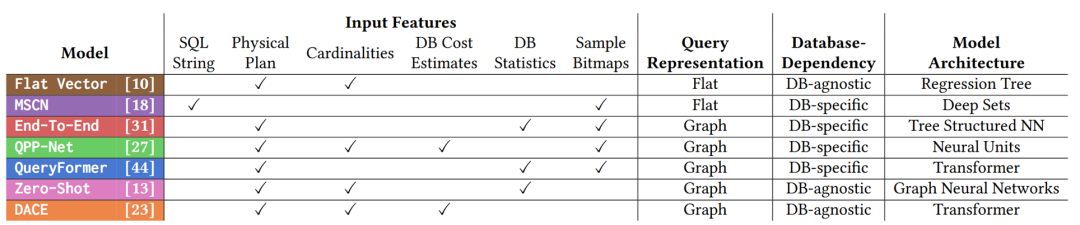 下面,将介绍来自德国达姆施塔特工业大学的 Roman Heinrich 等人的工作“How Good are Learned Cost Models, Really? Insights from Query Optimization Tasks”[4],发表在 SIGMOD 2025。比较了如下 7 个方法。