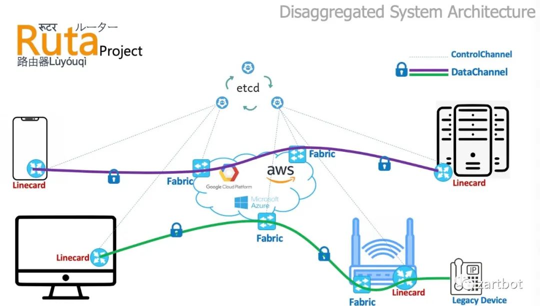 Ruta是一个完全云原生的去中心化自组织路由器架构,可以通过容器扩容支持数十Tbps容量和数百万端口密度的超大规模路由器系统。